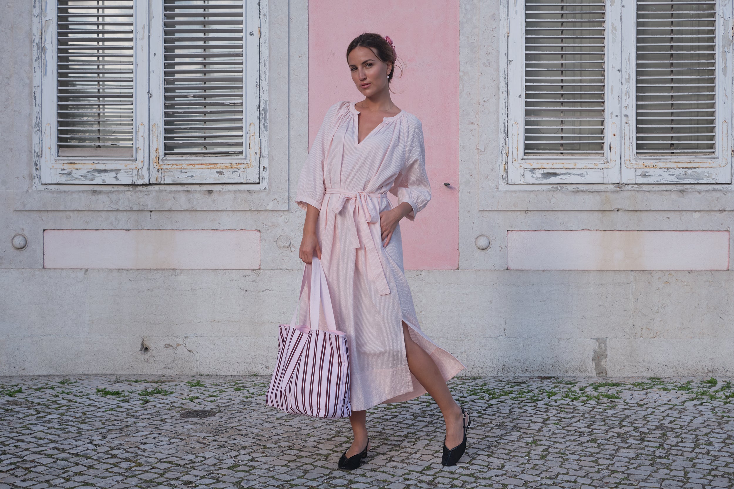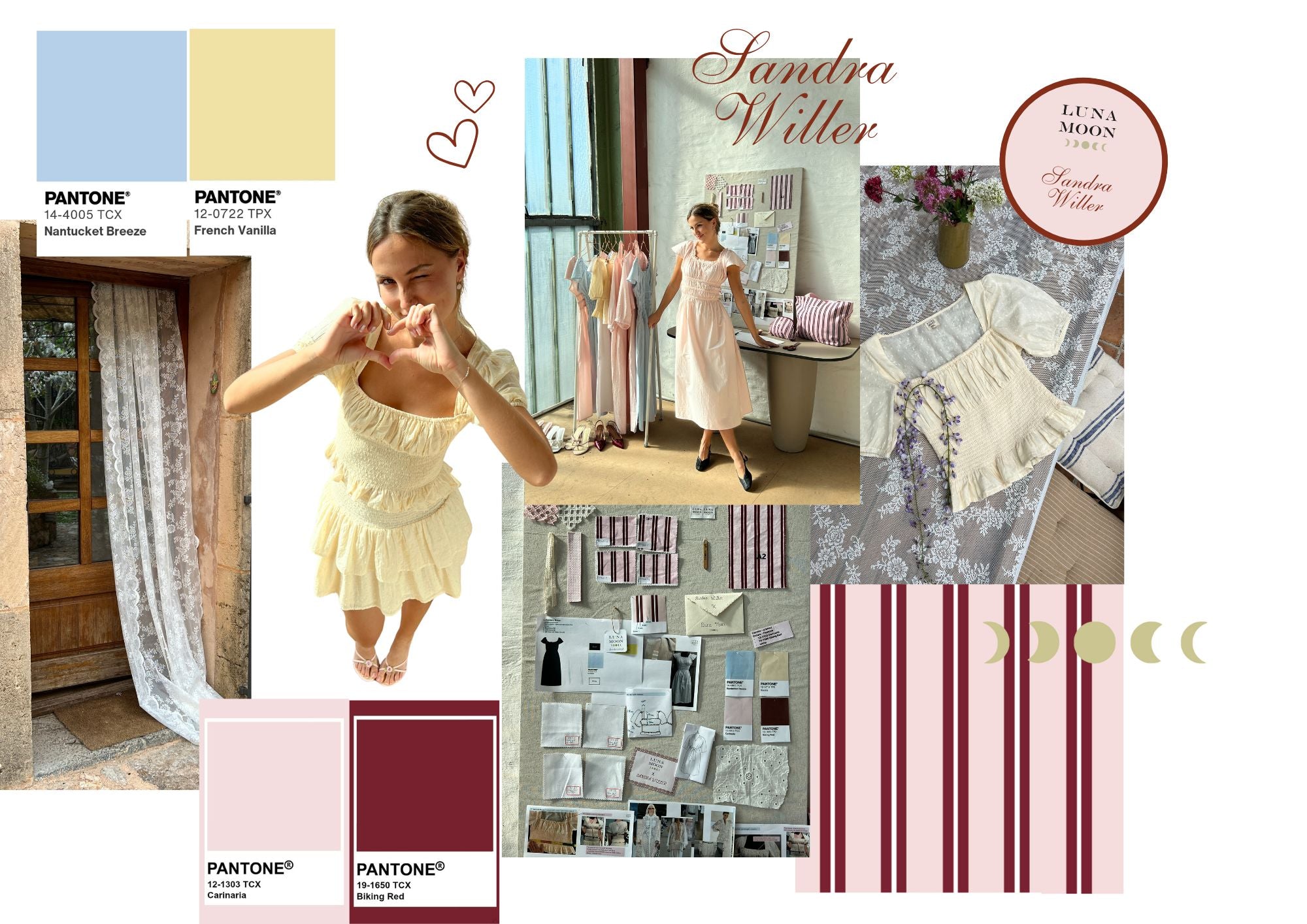 "Jeg ønskede, at denne kollektion skulle legemliggøre min kærlighed til femininitet og romantik, samtidig med at den omfavne komfort og anvendelighed. Vi har valgt en palet af bløde pastelfarver og parret den med åndbare stoffer for at skabe items, du kan dresse op eller ned til enhver sommerlig lejlighed."